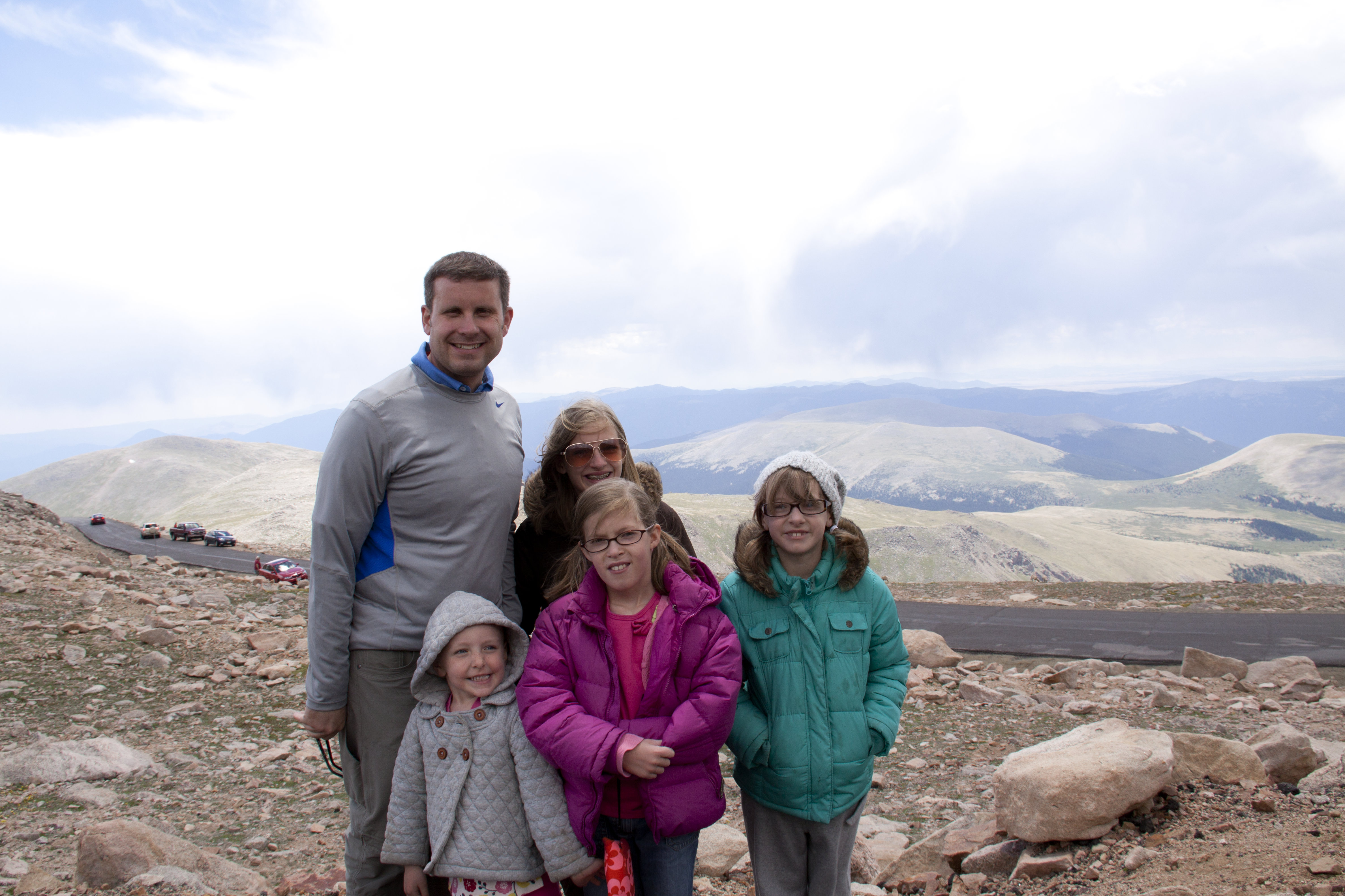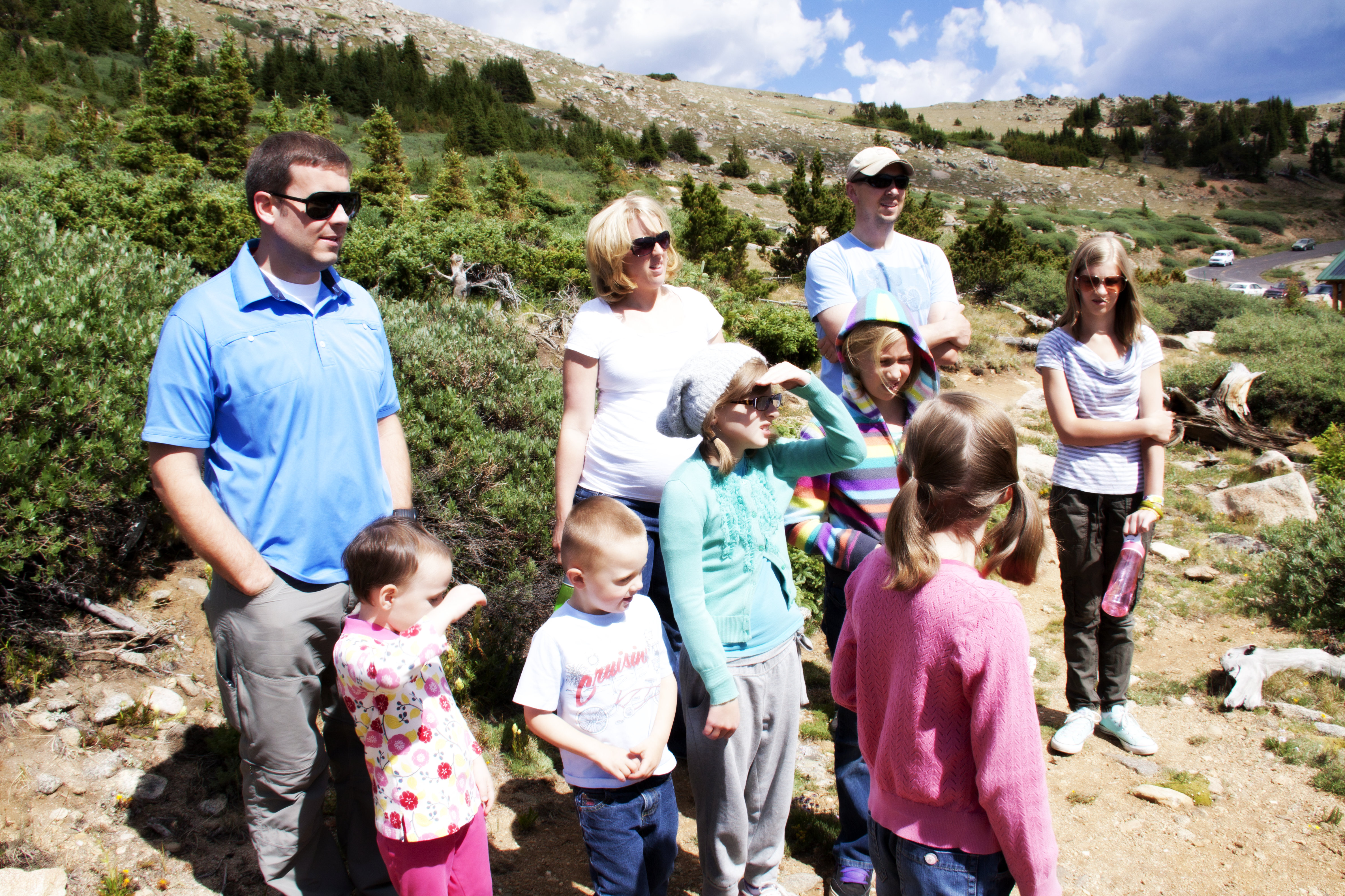 our field trip to mt. evans was a beautiful one. we drove up the mountains for 17 miles, and came to the national park entrance of mt. evans, where we drove another 18 miles up to the top. the views were absolutely breathtaking. we had a nature guide teach us about the bristlecone trees halfway up the mountain at mt. goliath research center, and then at the top, we caught the little class about the big horn sheep and mountain goats that roam the mountains. it was lovely, and this field trip fell on a saturday, so it was so great to have jarom there with us!