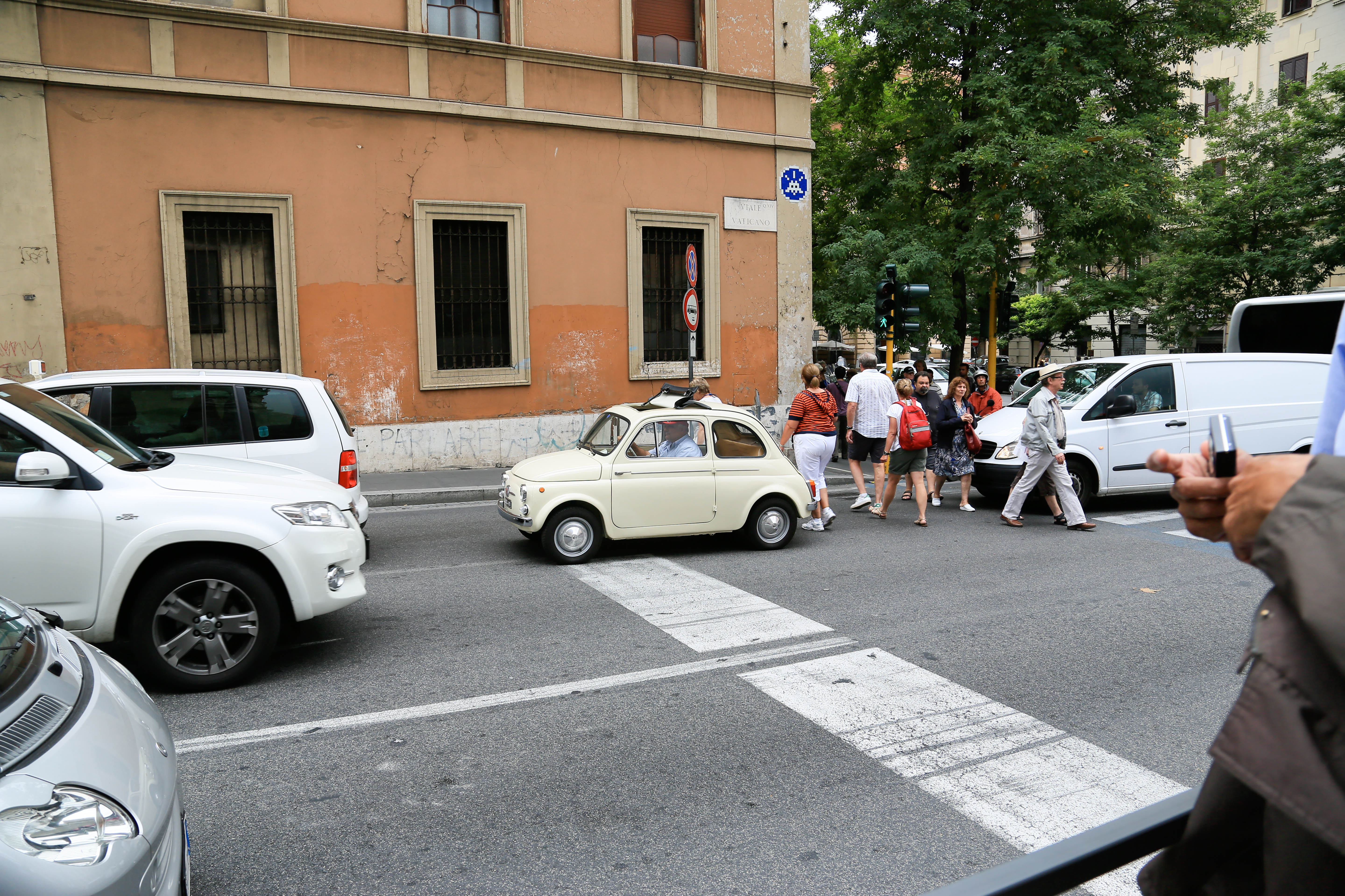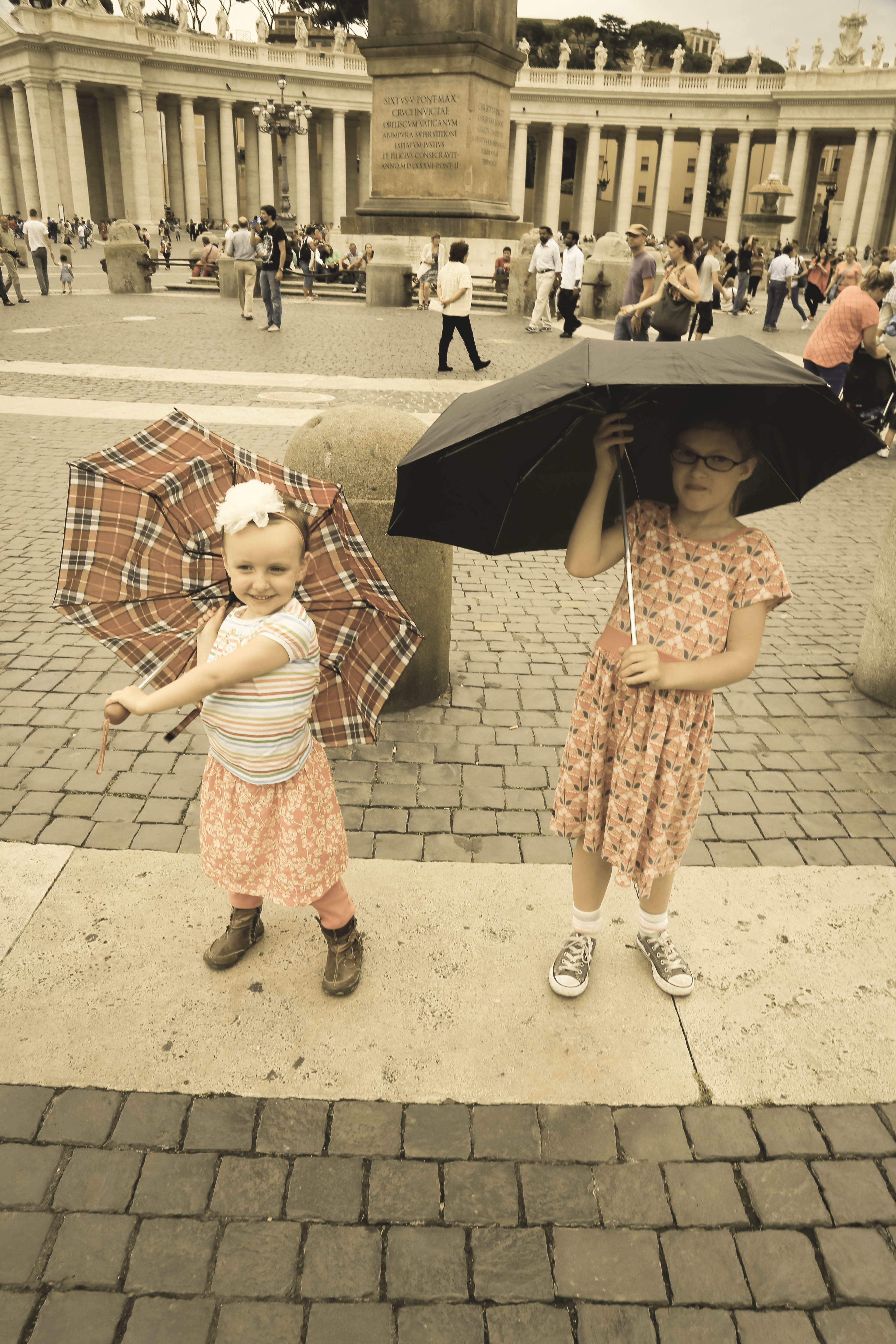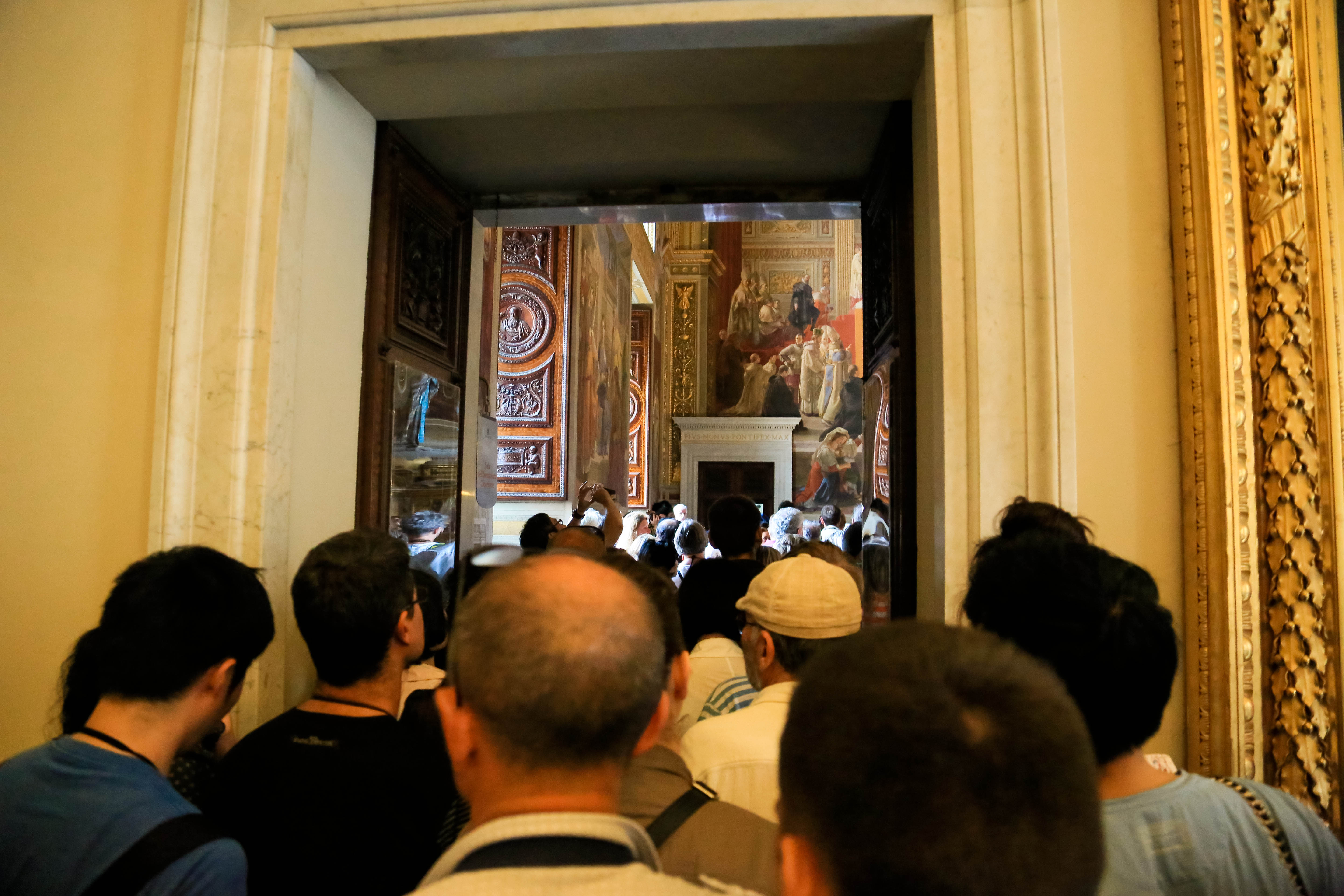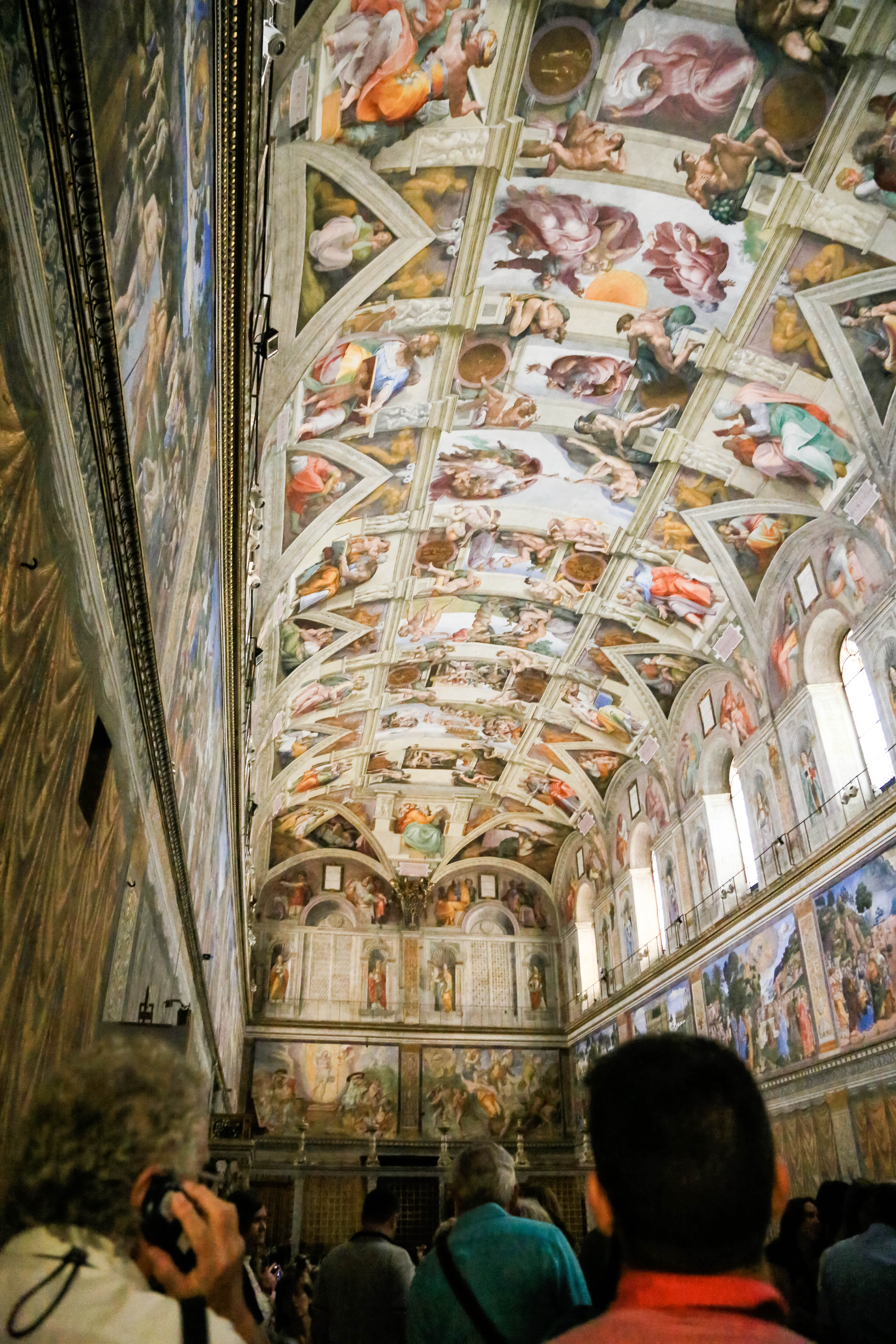 bus, metro, and finally arrived to the vatican. we bought and reserved tickets last night, and walked up with no line, which is awesome! our appt. time was 11:30, which isn’t that early, so you’d expect a huge line by that point, but there wasn’t. we bee-lined for the sistine chapel as soon as we got in, knowing the girls wouldn’t last too long. i think it took us walking the halls of the vatican for 30 minutes before we finally came to the sistine chapel. and that wasn’t looking at works of art, admiring sculptures, or admiring really much of anything. that was walking straight to the sistine chapel. it was absolutely beautiful and worth it! this is jarom and mine’s second time, but it was so great having our girls there this time, and seeing michelangelo’s amazing ceiling that took four years, on his back on scaffolding, with his arm up and paint falling and dripping into his eye. what an inspired man.