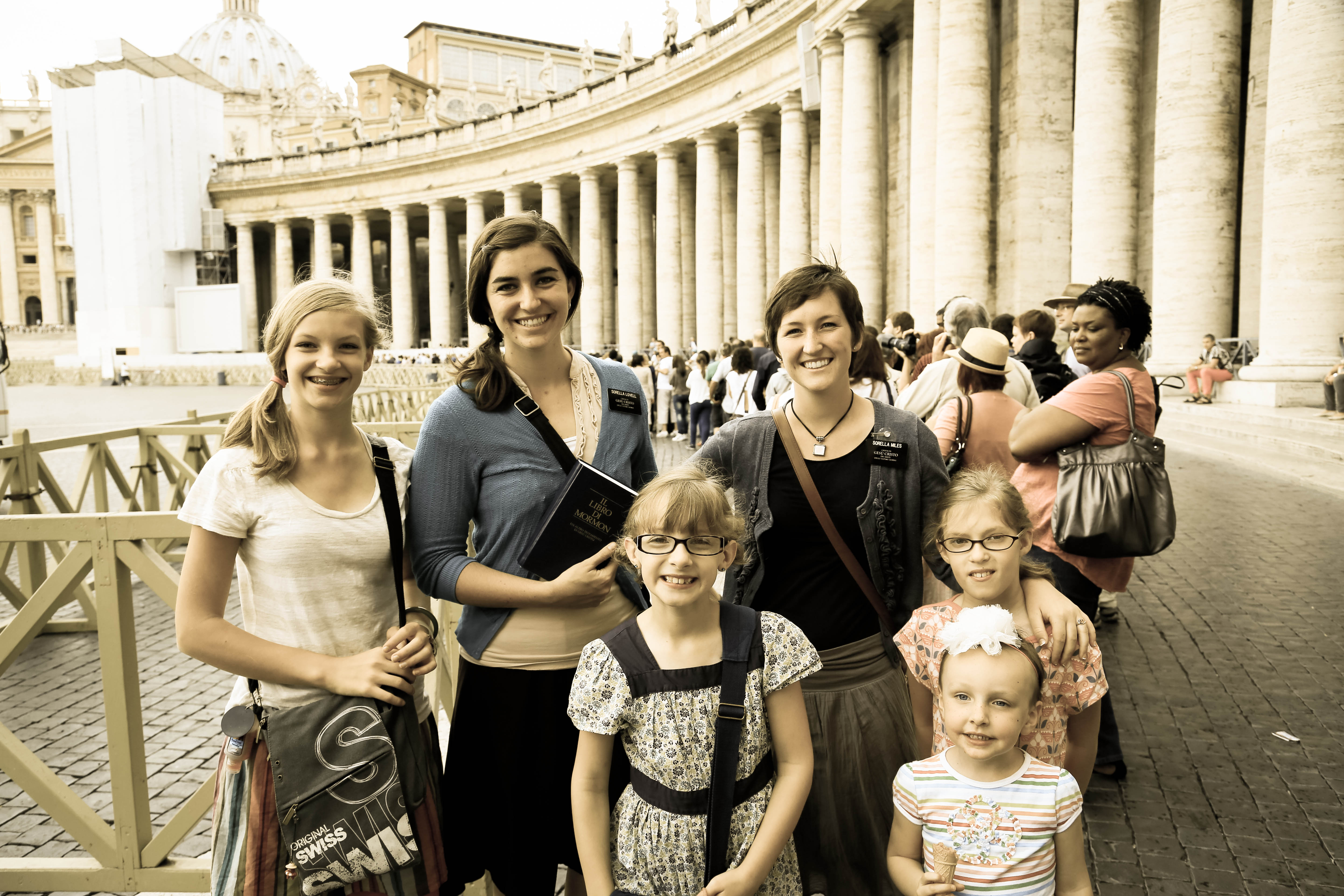we then walked out of the vatican, saw the now huge line wrapped around the walls of the vatican, and headed for st. peter’s basilica, getting a gelato on the way. there was a huge line, and when i say huge, i mean gigantic, and i walked up to a woman in the line to ask her and confirm this was the line for the basilica, and it ended up being a sister missionary-so cool! didn’t even see her missionary badge until after i had asked about the line. we saw elders over by the colosseum yesterday, and sisters at the vatican today. crazy! we decided not to wait in line, because we just didn’t think we could wait an hour or two, on top of an hour and a half getting home, so we headed for the metro. it’s been lovely relaxing, had dinner in the concierge lounge, and went swimming.